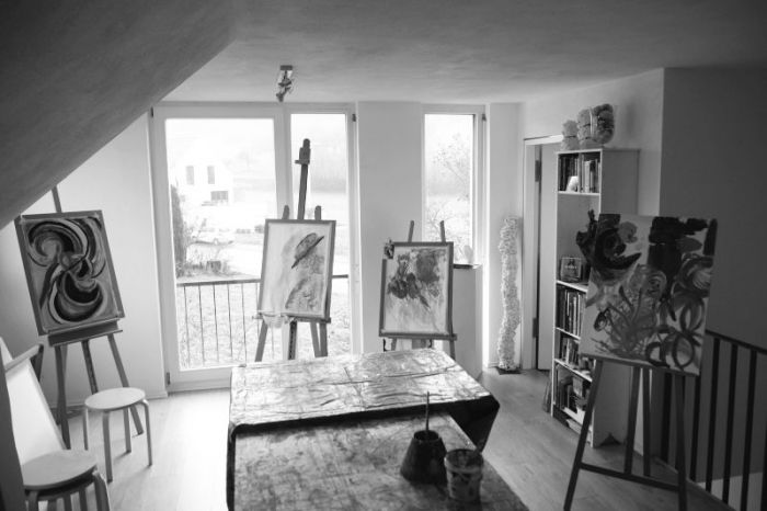 Immer mal wieder stelle ich meinen Atelierraum als "Offenes Atelier" zur Verfügung. Alle, die gerne malen und zeichnen sind in diesen Stunden willkommen, um ihren künstlerischen Ideen freien Lauf zu lassen. Ich stelle Papier, Farben und Ton bereit und berate in künstlerischen und materialtechnischen Fragen. Die Freude am künstlerischen Ausdruck und schöpferischer Tätigkeit steht hier ganz im Vordergrund.